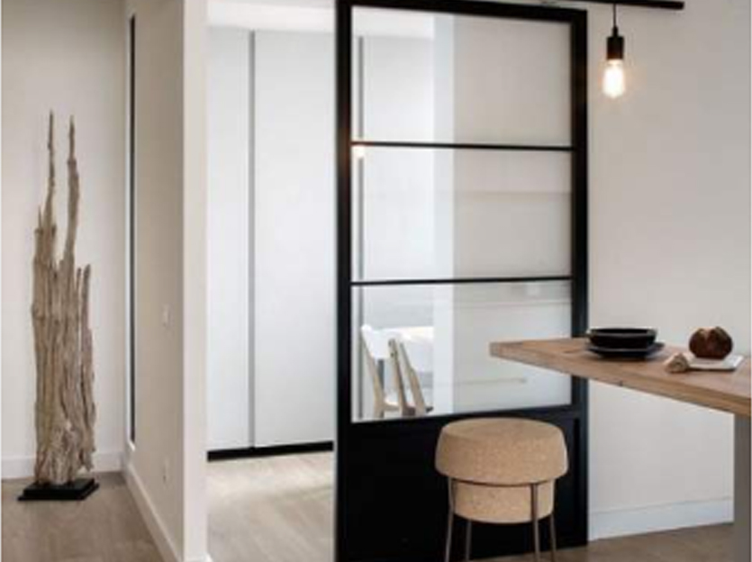 Sliding door takes up less space than traditional doors and can make a small room feel more open. They are also a great way to divide a room without sacrificing square footage. We know in places like kitchen where the traditional door will require more space the use of sliding doors is best possible option. Using mirror or see through glass can make space even bigger and without interruption.
