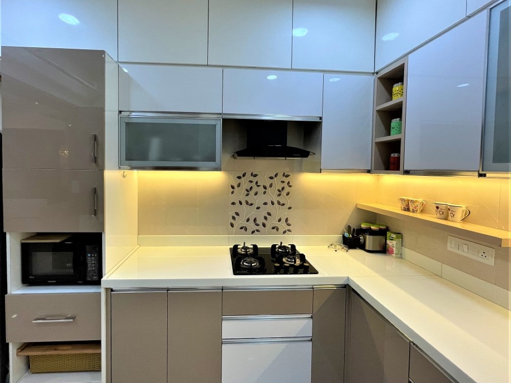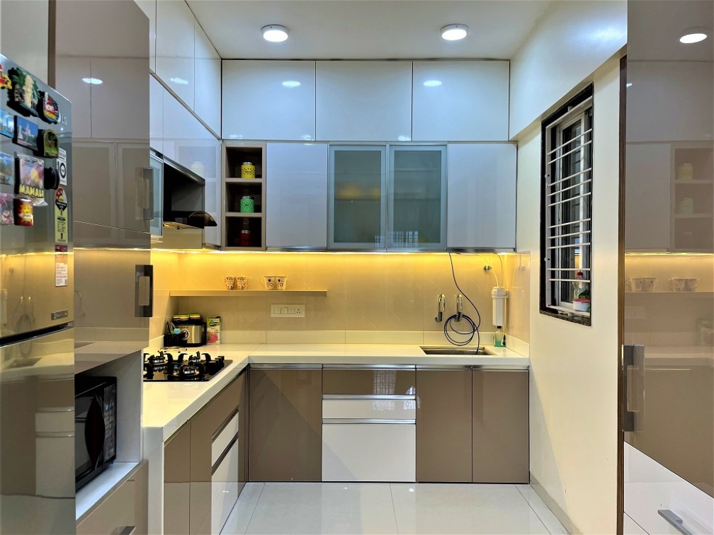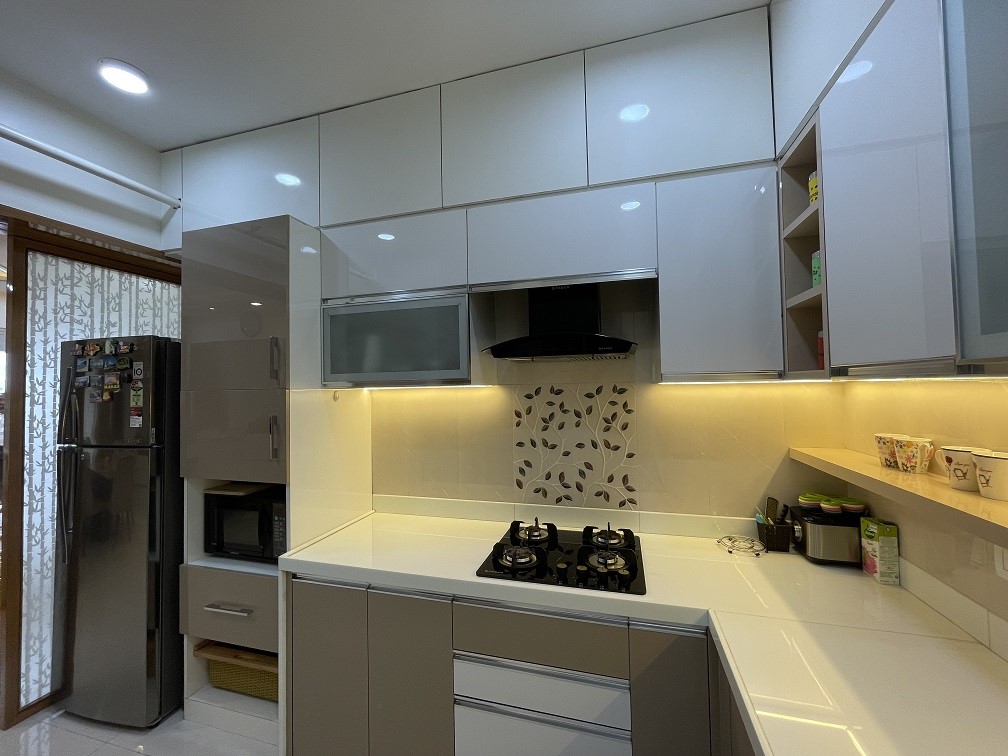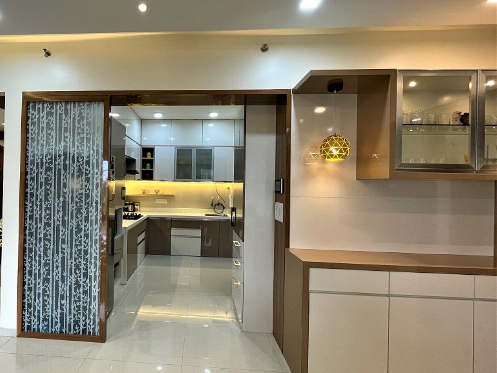 Capability to handle Civil work was another criterion, as family wanted to convert one of the bathrooms into Pooja room as per Vaastu, that involved quite a bit civil work like demolition, plumbing etc. Another piece of civil work was to demolish existing kitchen platform and construct new platform in modern countertop material like quartz or premium tiles, they wanted us to fix dado tiles as well. Additional civil work was in the utility area so that they can have dedicated space for washing machine as well as dishwasher, sink fitting and water drain unit.