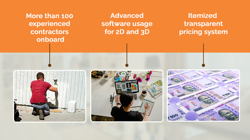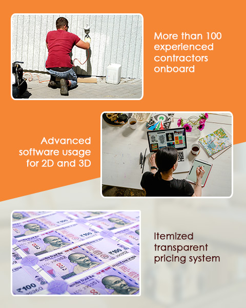 At decormyplace we have made the arrangement of the largest team of designers to cater to ever growing demand of beautiful and modern designs for urban areas. This team consist of various members like vastu Shastra experts, lighting experts, false ceiling experts, civil work experts etc. We always involve 2-3 designers in any project so that designs and drawings can be finished at the earliest and execution can be started in shortest possible time.