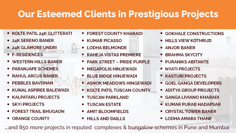 In last four years we finished projects in various premium complexes like Daffodils, Kunal group, Park street complex like Park Ivory, Park Titanium etc.